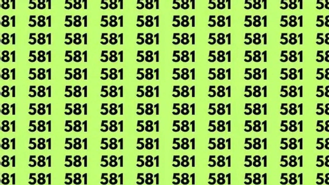 Desafio visual encontre o número diferente entre vários 581 em fundo verde