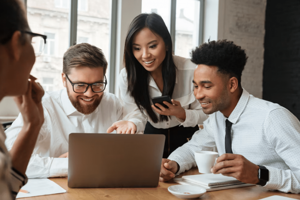 Cultivar a felicidade no trabalho começa com pequenas atitudes do dia a dia, como defende a regra dos três metros. Imagem: Freepik