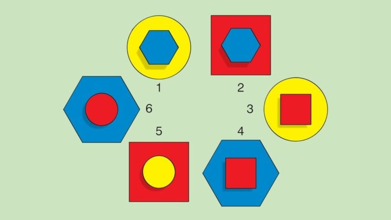 No quebra-cabeça apresentado acima, você verá seis formas codificadas por cores. Uma delas está incorretamente codificada por cor. Sua tarefa é encontrar a forma com a cor errada em apenas 8 segundos.