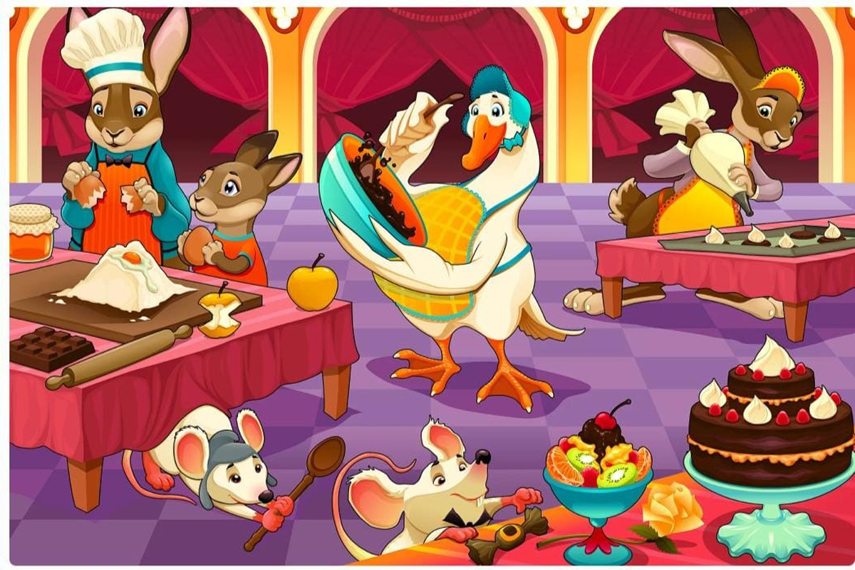Logo abaixo, você vai ver duas imagens que retratam uma cena bem cômica e fantasiosa de animais produzindo doces no castelo. Apesar da comicidade e de todas as distrações que estão envolvidas na prática desse tipo de atividade, saiba que você precisa ignorar tudo isso e encontrar apenas uma flor escondida nessa cena. Portanto, será que você tem capacidade visual e cognitiva de fazer isso de forma tão rápida? Vamos avaliar sua capacidade enquanto se diverte tentando resolver esse enigma agora mesmo:
