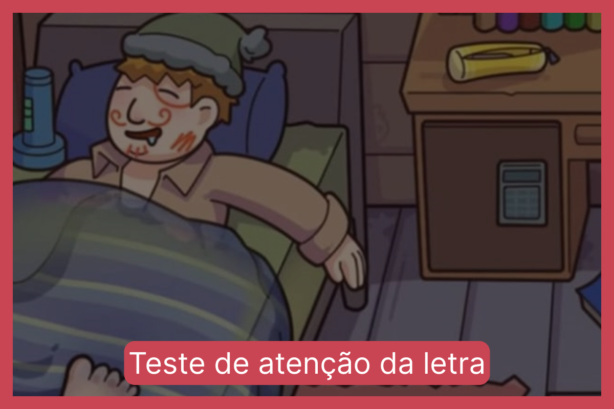 Como mencionado, o quarto está uma bagunça completa, e isso faz com que o teste de atenção da letra seja um dos mais difíceis disponíveis em nosso site. Aqui, você precisa mostrar que sua capacidade de observação é mais afiada que a da maioria das pessoas que já tentaram resolver este desafio sem sucesso. Afinal, a letra pode estar em qualquer parte da imagem, e o tempo é curto, o que torna a tarefa ainda mais desafiadora. Além disso, as distrações visuais são muitas, tornando a experiência um verdadeiro teste de foco e agilidade.