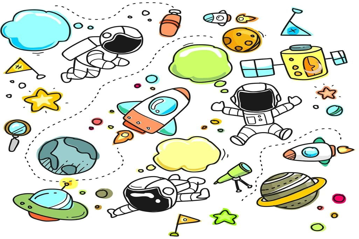 Logo abaixo, você vai ver diversas imagens que retratam desenhos relacionados ao mundo espacial. Você verá astronautas e foguetes e satélites que estão espalhados para confundir sua capacidade de encontrar aquilo que foi solicitado em menos de 10 segundos. Nesse caso, você precisa ignorar tudo isso e focar apenas na presença da lua que está em algum lugar dessa figura. Portanto, que tal demonstrar que nada possa despercebido e que você consegue fazer isso ao analisar a cena logo abaixo: