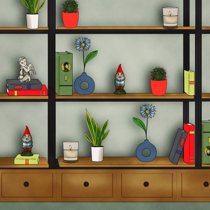 Analisando a imagem acima, você consegue notar que a estante está bem organizada com alguns objetos dispostos de forma aleatória. Nesse desafio, a sua missão é encontrar o único item que não contém um par nas prateleiras. Por isso, seja rápido para analisar toda a cena e tentar chegar à conclusão porque você tem apenas 10 segundos e seu tempo já está correndo.