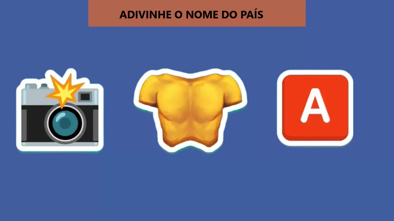 Pensando nessas pistas, o país que estamos procurando é a Camboja. É formado pela combinação do emoji de câmera e body (corpo em inglês) e da letra a.