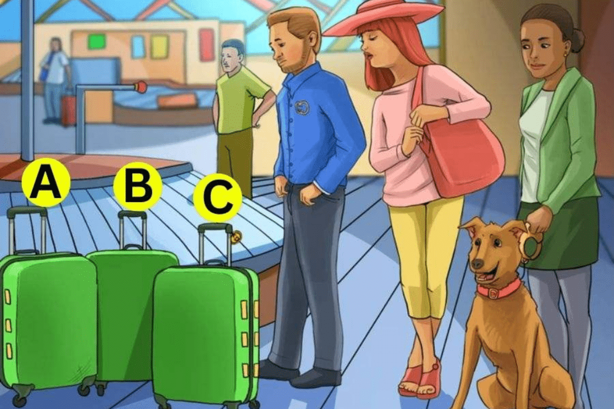 Se você gosta de desafiar sua percepção, este teste de QI é ideal para você! Na cena, três malas verdes estão alinhadas em um movimentado aeroporto. Ao redor, três viajantes e um cachorro aguardam suas bagagens. Seu objetivo é analisar os detalhes e descobrir rapidamente qual mala pertence a qual pessoa.