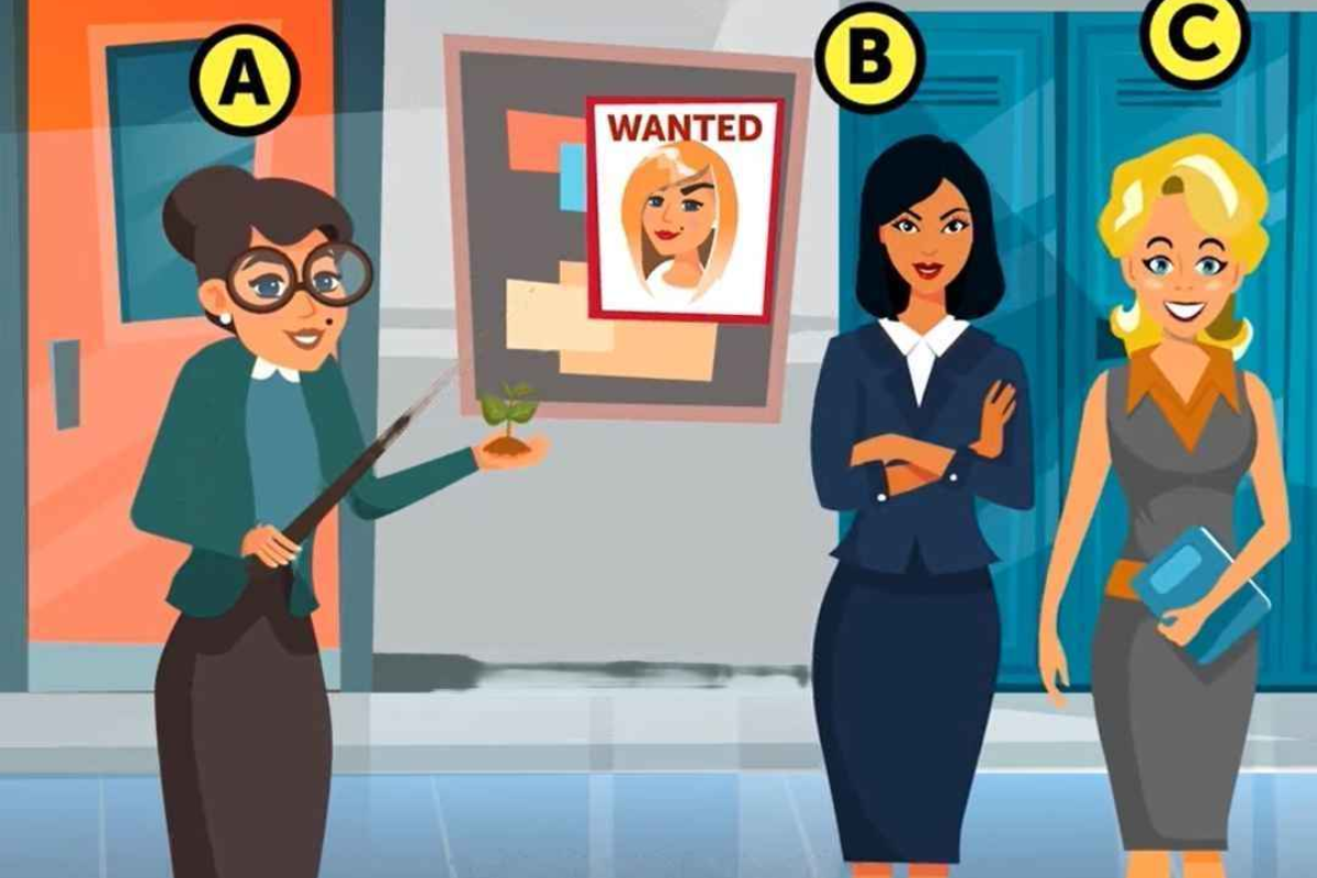 Neste teste de QI, você verá três mulheres em pé lado a lado. Atrás delas, há uma foto na parede de uma mulher procurada. Seu objetivo é observar atentamente e identificar qual das mulheres é a criminosa. Mas cuidado: você tem apenas 6 segundos para resolver o desafio!