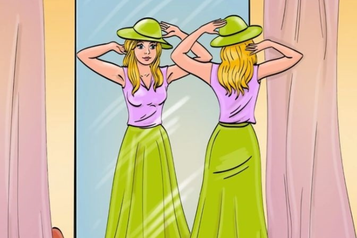Por mais que tudo pareça estar em ordem à primeira vista, há um detalhe nessa imagem que não faz sentido quando olhamos mais atentamente. Você consegue identificar o erro escondido nela? Observe cuidadosamente o reflexo da mulher no espelho e tente descobrir o que está fora do lugar!