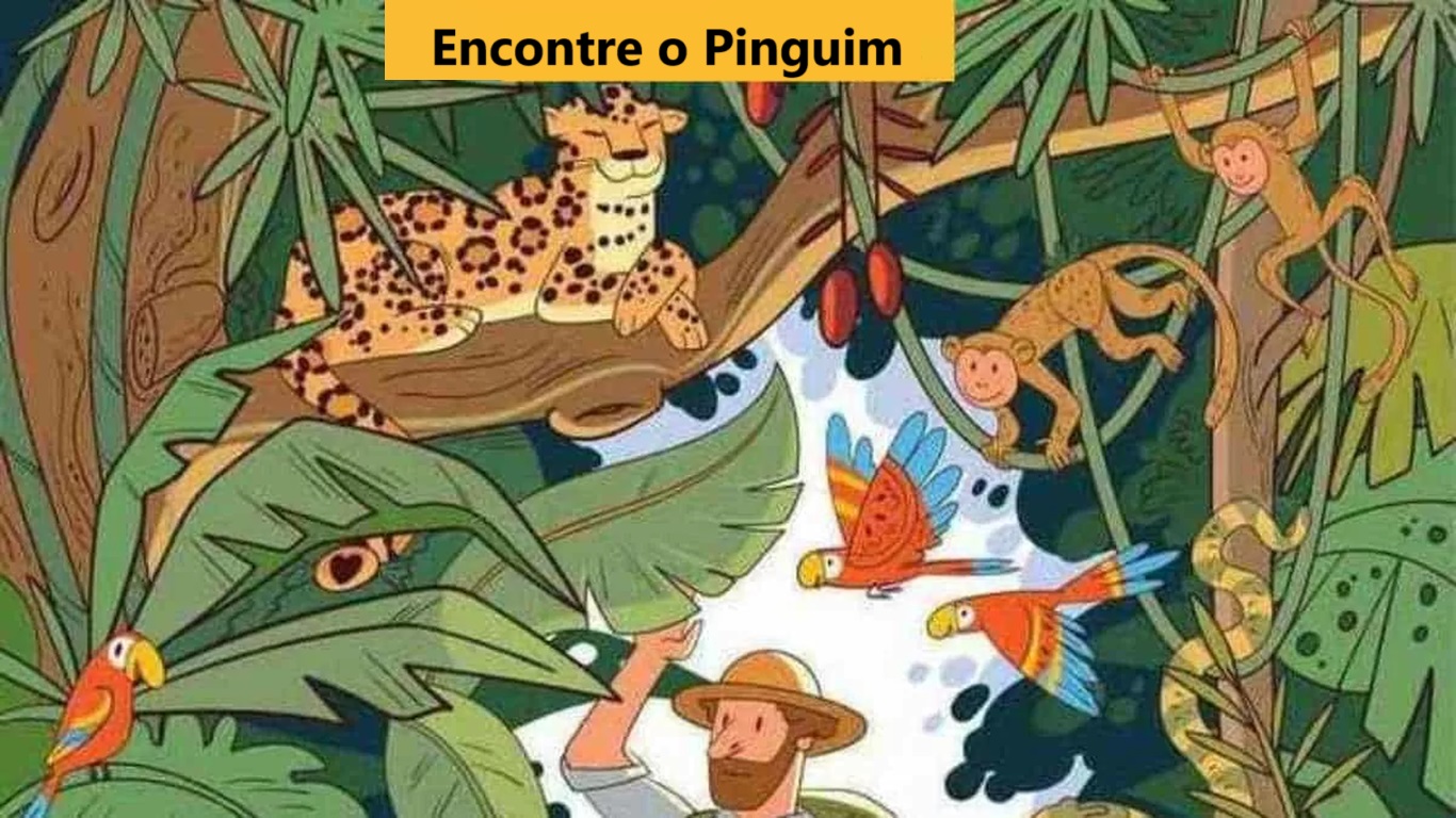 Com um limite de 8 segundos para encontrar o pinguim escondido na selva, este teste de QI visual desafia sua agilidade mental e habilidades de observação. A presença de outros animais, um explorador e uma vegetação densa complica a tarefa, exigindo que você examine rapidamente cada detalhe da imagem. Este exercício não só testa sua capacidade de detectar um elemento específico em um ambiente visualmente carregado, mas também sua rapidez em identificar padrões e discrepâncias. Manter o foco e utilizar estratégias de busca eficientes são essenciais para resolver o desafio dentro do tempo estipulado. Boa sorte e divirta-se com esta emocionante busca visual!