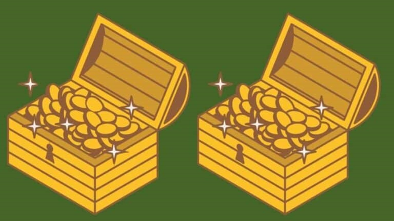 Agora vamos para resolução do teste de QI, na imagem abaixo você irá encontrar onde está localizado as 5 DIFERENÇAS na imagem do baú de um tesouro cheio de moedas de ouro, parabéns! Se por acaso não encontrou, não se preocupe, no próximo desafio visual, teste visual ou desafio matemático você com certeza irá conseguir. Lembre-se bem de sempre está observando a imagem com atenção e use as dicas fornecidas para se dar bem. Boa sorte!