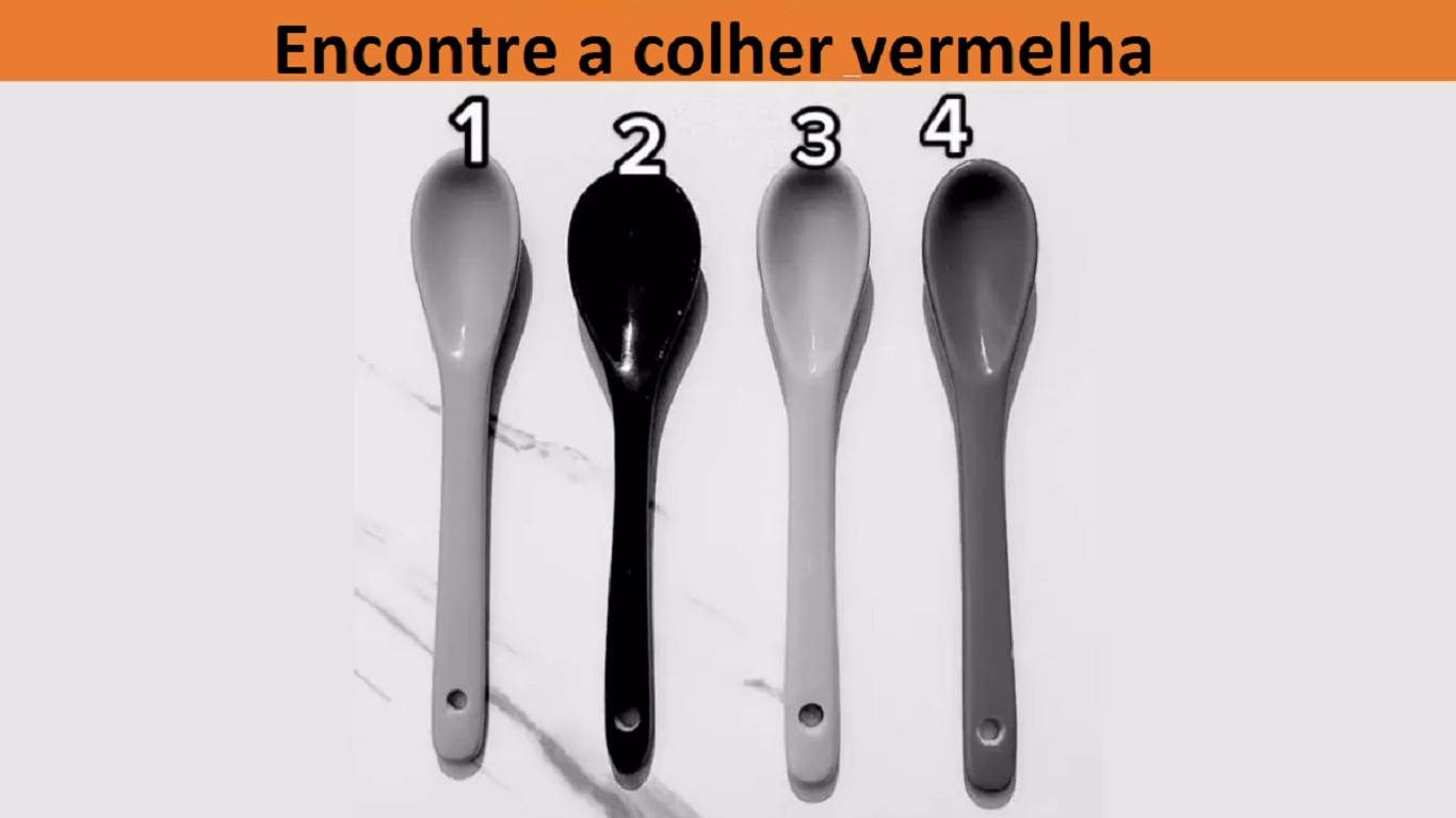 Agora vamos para resolução do teste de QI, na imagem abaixo você irá descobrir qual a COLHER VERMELHA que estava difícil de ser identificada devido a imagem ser preta e branca. Se você encontrou a colher vermelha bem disfarçada de forma preta e branca na imagem em até 5 segundos, parabéns! Se por acaso não encontrou, não se preocupe, no próximo desafio visual, teste visual ou desafio matemático você com certeza irá conseguir. Lembre-se bem de sempre está observando a imagem com atenção e use as dicas fornecidas para se dar bem.