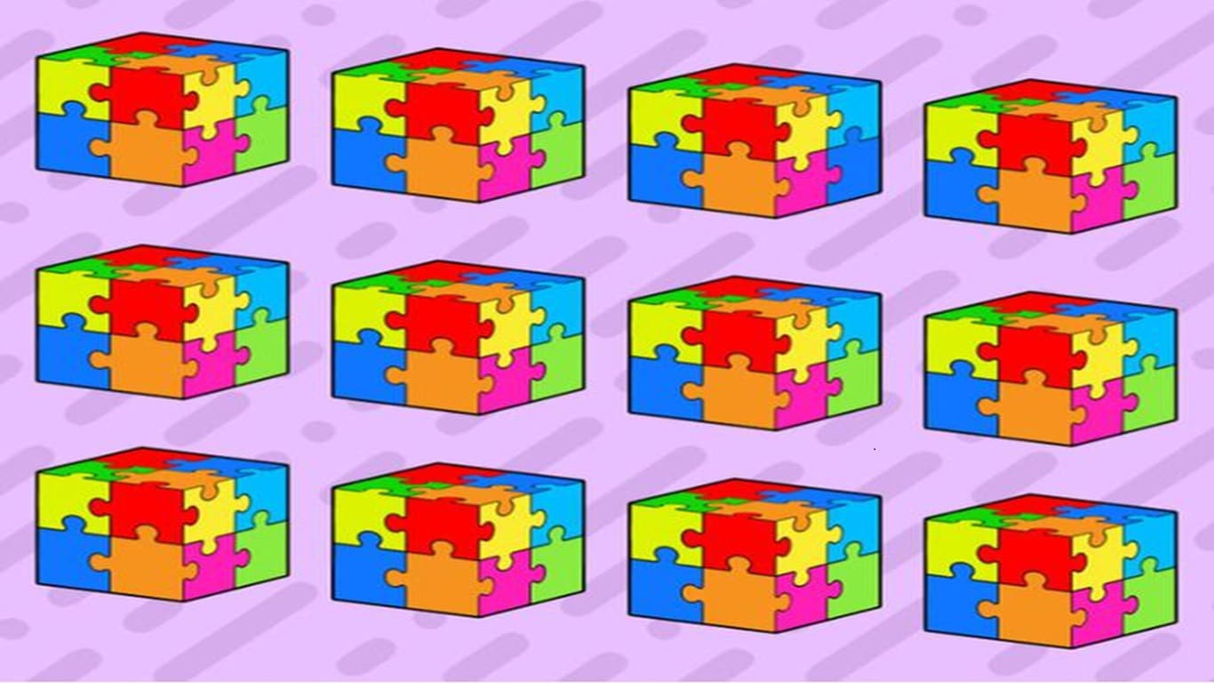 - Observe padrões e simetrias – Os cubos podem seguir um padrão de cores ou posicionamento. Tente identificar esse padrão para encontrar o que foge da regra, seja por cor, tamanho ou orientação.