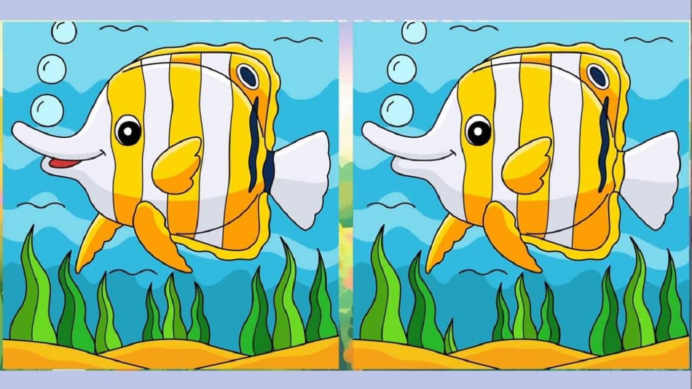 Agora vamos para resolução do teste de QI, na imagem abaixo você irá encontrar onde está localizado as 3 DIFERENÇAS na imagem representada por dois peixinhos coloridos.