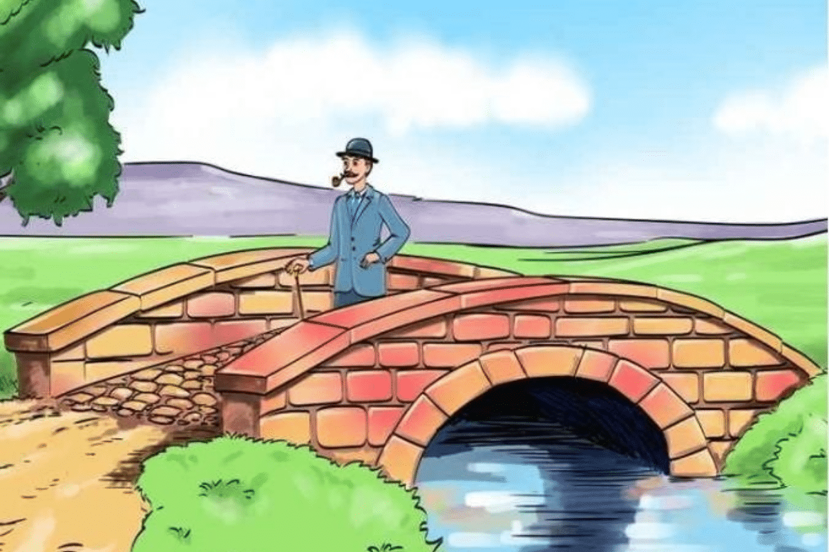 À primeira vista, a imagem parece comum: um homem atravessando uma ponte em um cenário tranquilo. No entanto, há um erro escondido, esperando para ser descoberto. O teste de QI? Encontrá-lo em apenas 5 segundos!