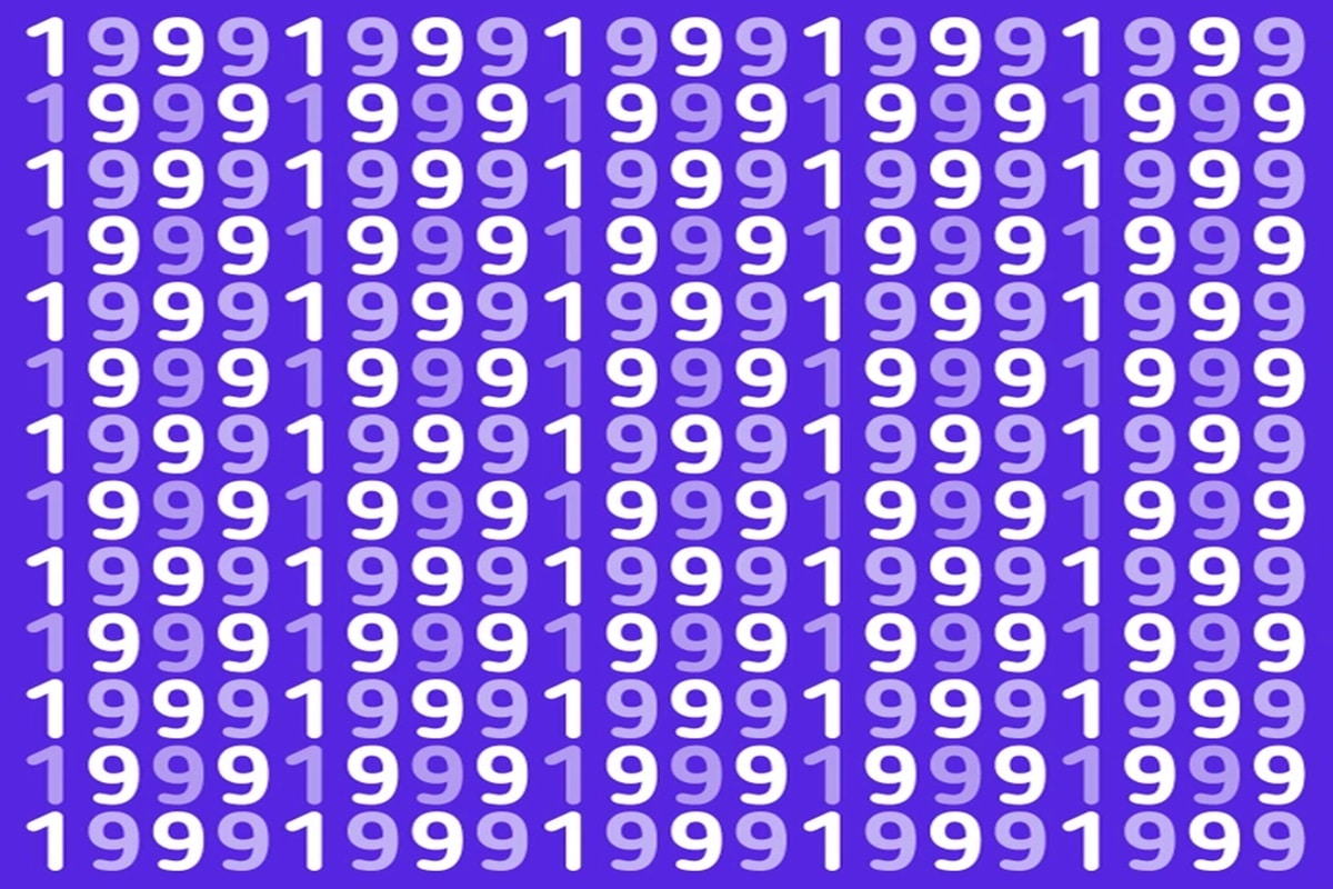 Prepare-se para o desafio de hoje, que vai testar sua percepção! Observe atentamente: a imagem exibe uma repetição de números 1999 em branco e lilás sobre um fundo azul. A tarefa é encontrar o único número 1998 escondido entre eles, estimulando sua atenção e concentração visual. Será que você consegue identificar o número 1998 nesta imagem em até 20 segundos?