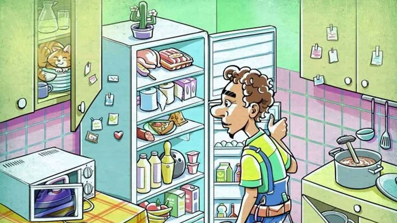 Espero que essas dicas ajudem você a encontrar rapidamente os erros na ilustração da cozinha. Boa sorte!