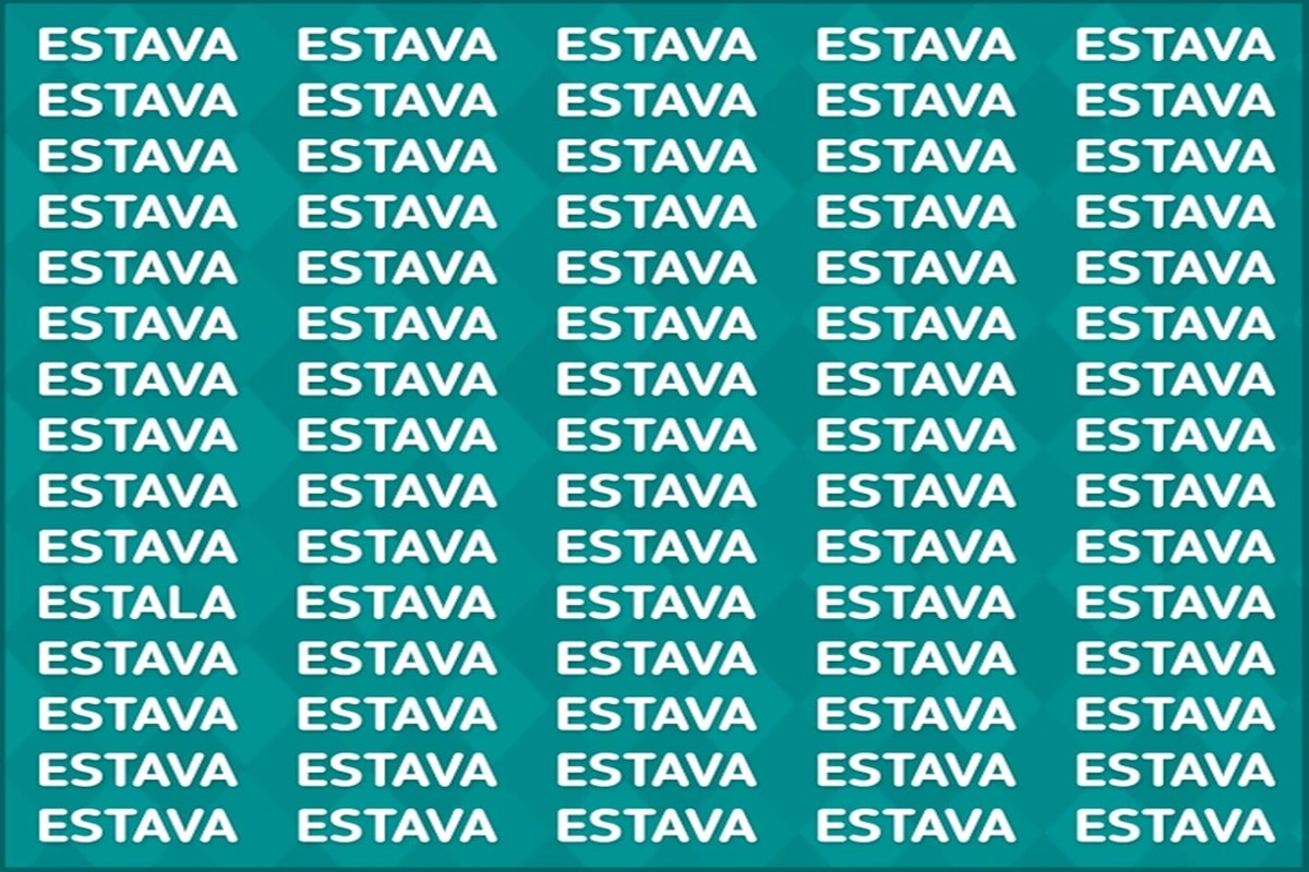 Prepare-se para o desafio de hoje, que vai testar sua percepção! Observe com bastante atenção, a imagem mostra uma ilustração composta por várias palavras “ESTAVA” repetidas. Entre tantas palavras, há uma palavra diferente camuflada. Você consegue achar a palavra fora do padrão em até 25 segundos?