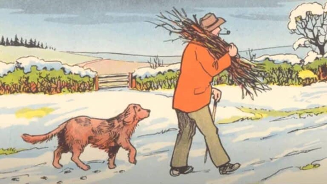 Agora vamos para resolução do teste de QI, na imagem abaixo você irá encontrar onde está localizado o ÚNICO ERRO na imagem representada por um homem caminhando com cachorro na neve carregando lenha.