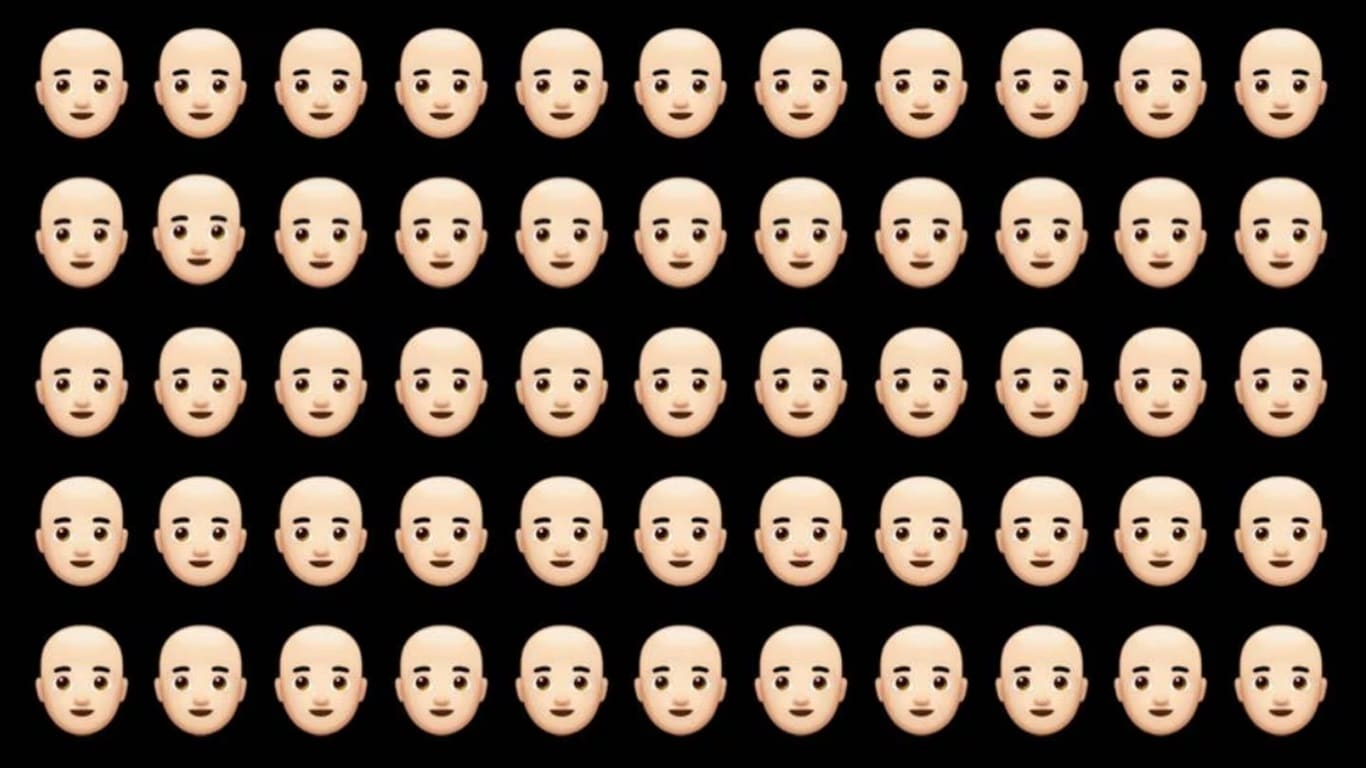 Rostos carecas em padrão repetido com um “intruso”