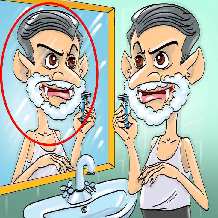 A imagem em questão mostra um vampiro que parece estar fazendo sua barba diante de um espelho. À primeira vista, tudo parece normal, mas um detalhe crucial contradiz a lógica e os mitos populares. Será que você notou o que está errado? Lembre-se, os vampiros, segundo as lendas, não possuem reflexo!