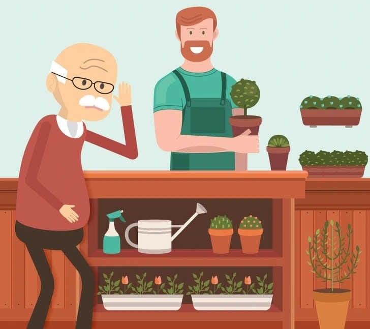 Na imagem acima, você pode notar que o simples velho procurou uma floricultura e o atendente parece estar atento a tudo que ele está pedindo. No entanto, esse velho é surdo. Logo, a sua missão é descobrir como foi que ele conseguiu comprar suas flores em apenas 10 segundos. Porque, isso provará que você tem uma capacidade de raciocínio lógico muito elevada.