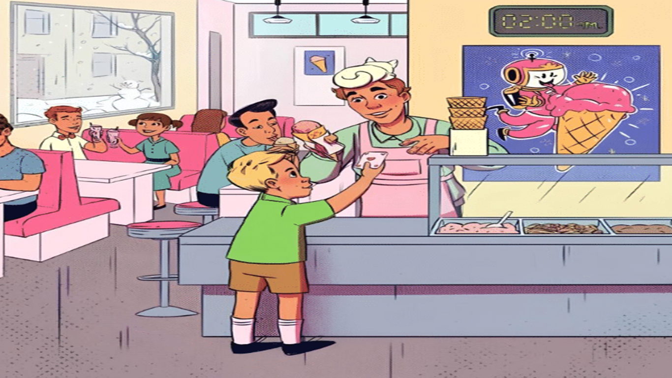 Neste teste visual, sua missão é encontrar cinco erros ocultos em uma imagem de uma sorveteria. A cena pode parecer normal à primeira vista, mas com um olhar atento, você perceberá que há discrepâncias sutis que não deveriam estar ali. Entre sorvetes, casquinhas, clientes e funcionários, os erros estão bem camuflados, exigindo concentração e uma observação cuidadosa. Você consegue identificar todas as diferenças? Desafie suas habilidades visuais e divirta-se encontrando os cinco erros escondidos nesta imagem encantadora de uma sorveteria! Boa sorte!