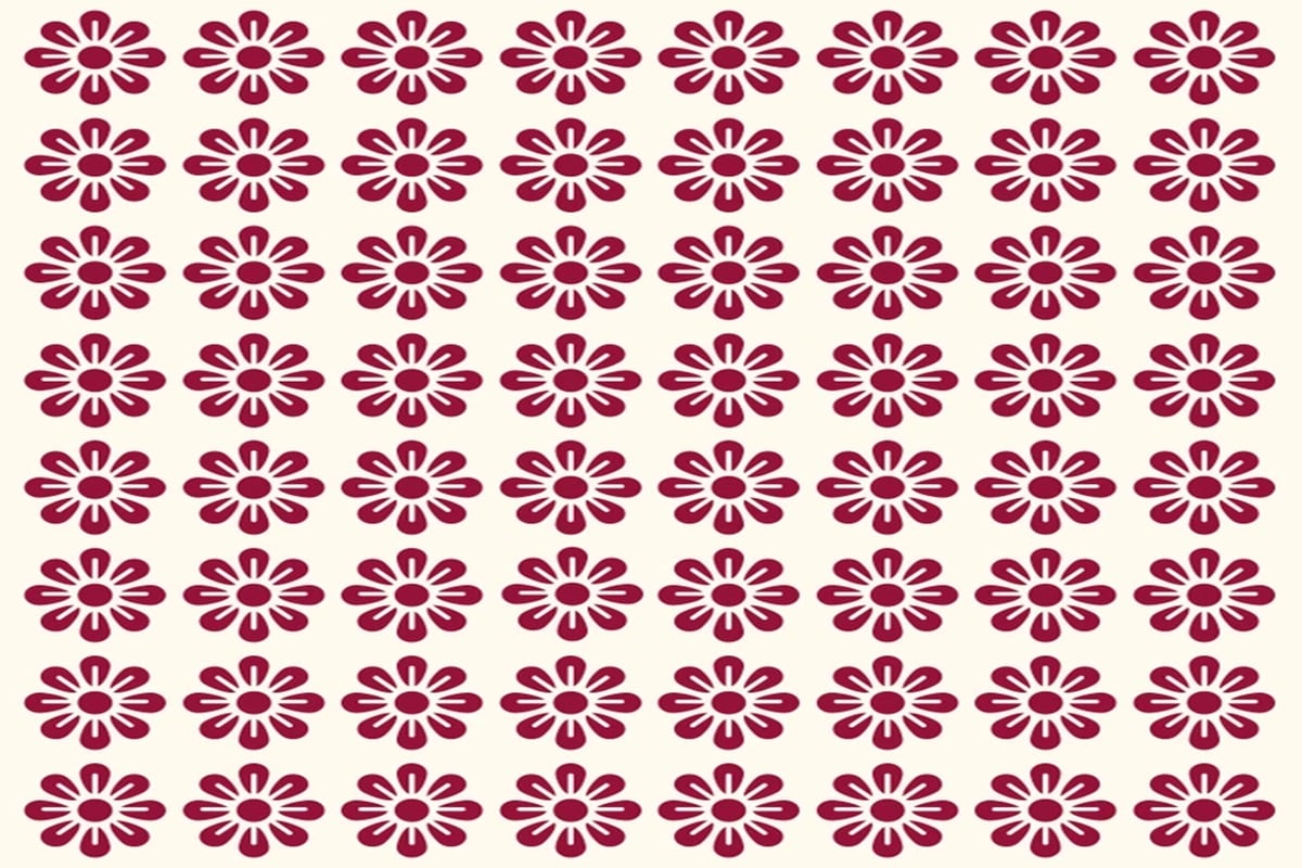 A imagem mostra um padrão de flores vermelhas dispostas em filas, com apenas uma flor diferente das demais. Seu desafio de hoje é identificar, entre várias flores, qual é a única flora diferente na imagem em apenas 25 segundos.