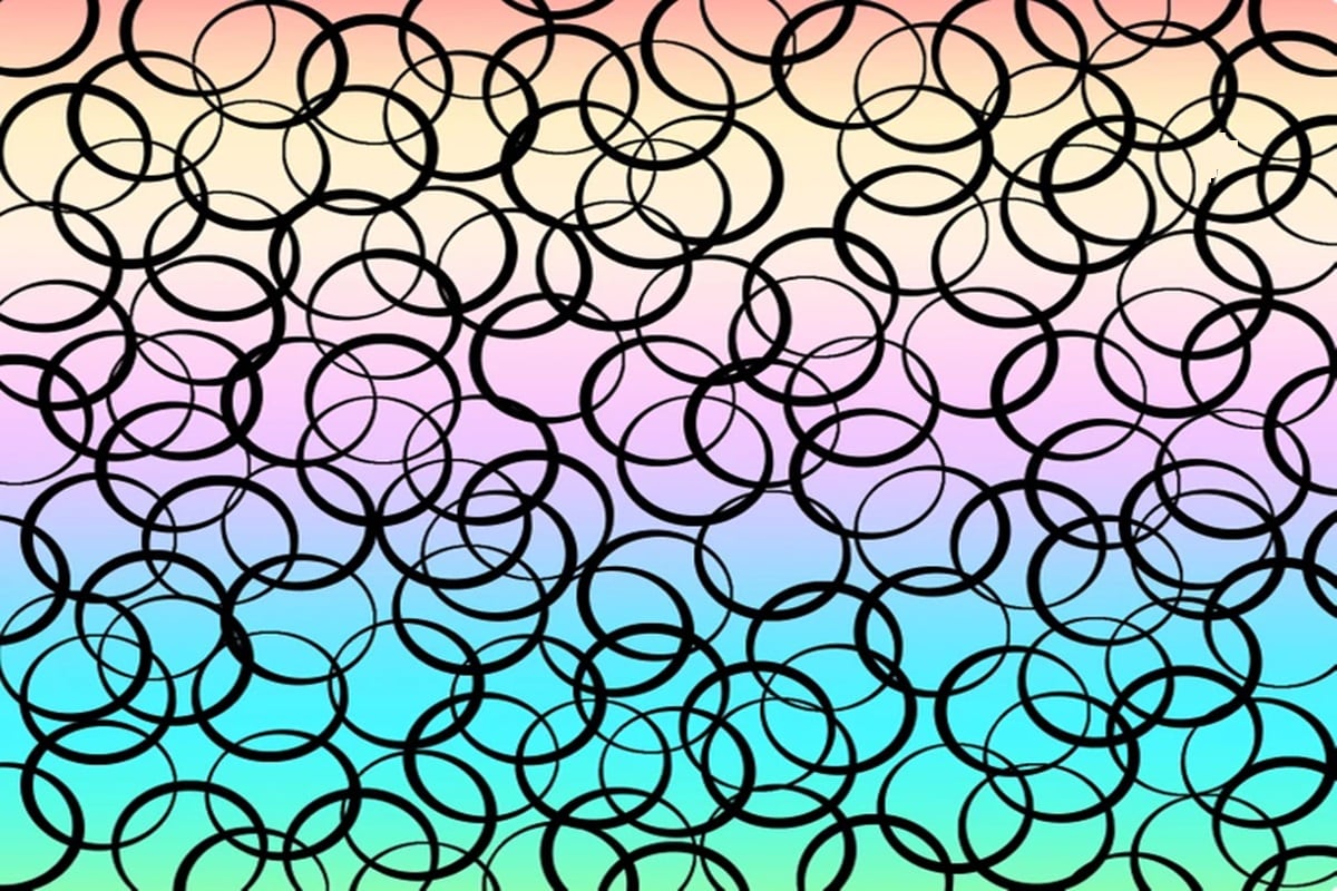 Prepare-se para o desafio de hoje, projetado para avaliar sua percepção. Observe a imagem com um padrão visual formado por vários círculos pretos interligados, contrastando com um fundo em tons pastéis em degradê.