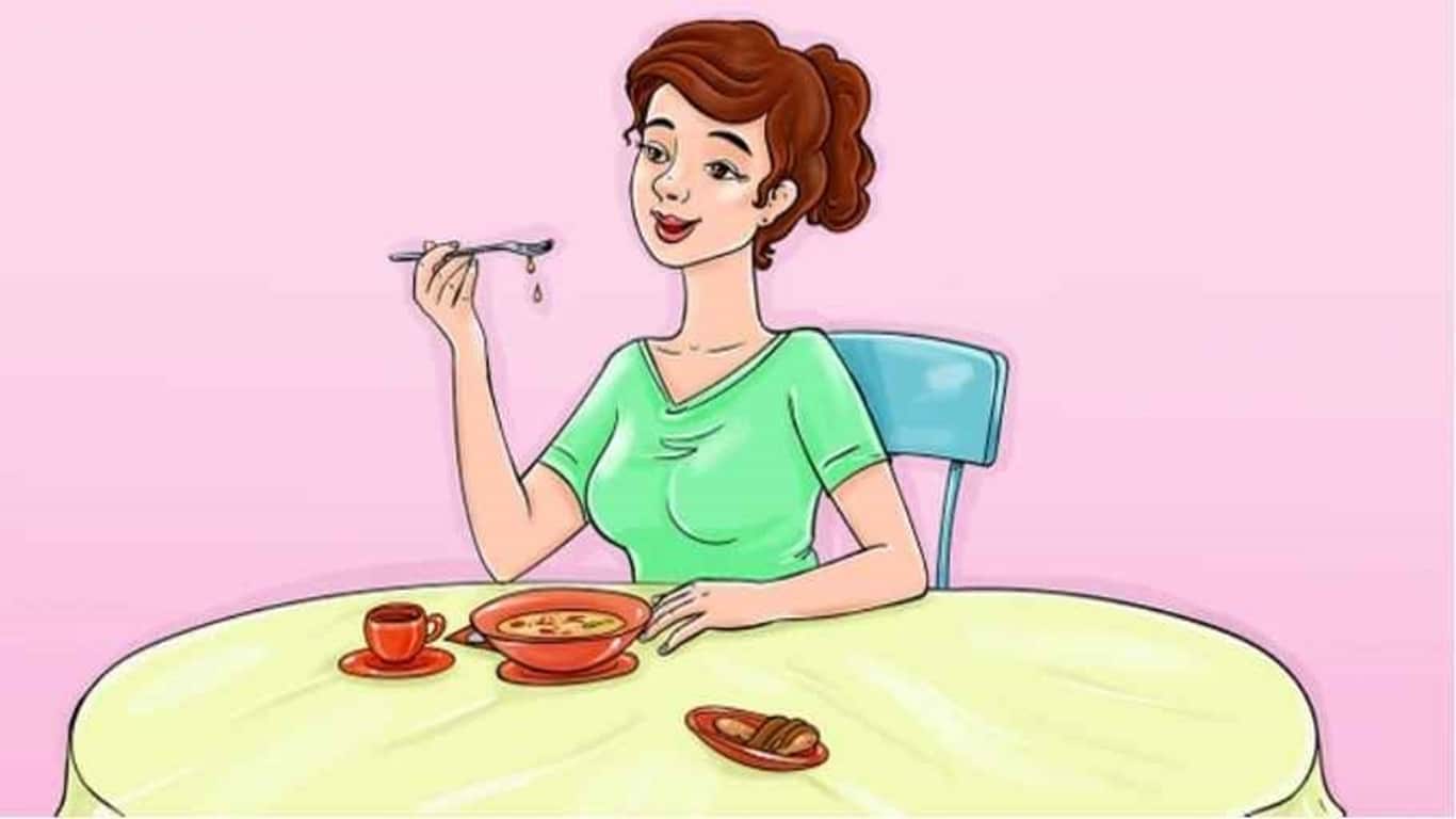 Resposta: O erro consiste na mulher tomando sopa com garfo.