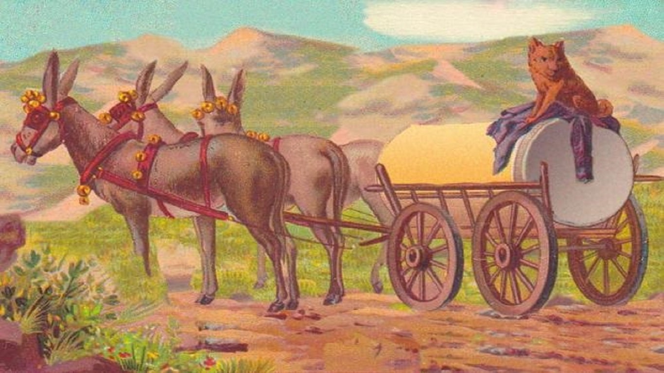 - Observe padrões simétricos ou olhos em potencial: Rostos geralmente têm simetria. Procure pares de formas parecidas que possam ser olhos, narizes ou bocas embutidos no relevo das montanhas, no pelo do cachorro ou nas tábuas da carroça.