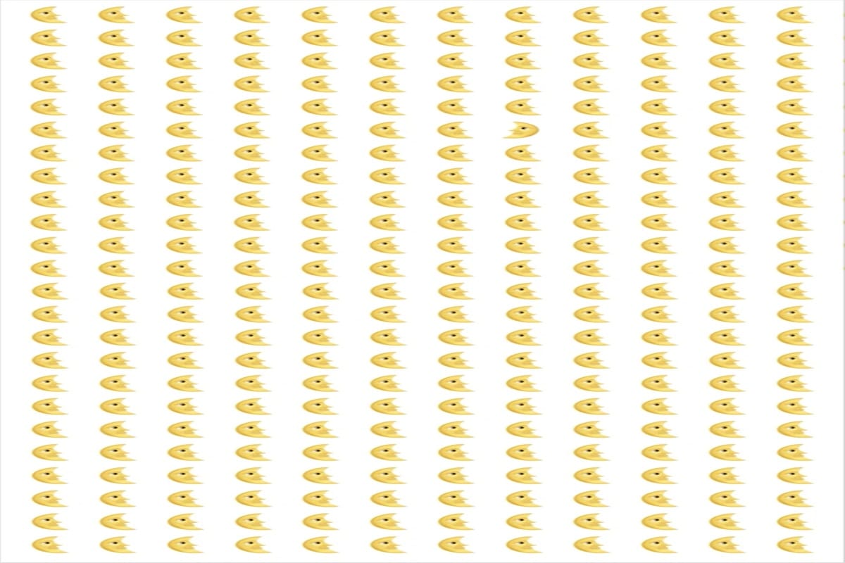 Prepare-se para o desafio de hoje, que vai testar sua percepção! Observe com bastante atenção, a imagem mostra centenas de luas de coloração amarela, alinhadas sobre um fundo branco. À primeira vista, todas parecem idênticas, mas uma delas quebra o padrão. Você consegue achar a lua fora do padrão em até 25 segundos?