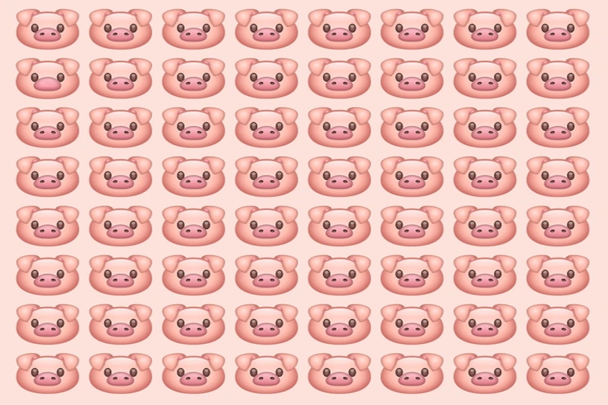 Prepare-se para o desafio de hoje, que vai testar sua percepção! Observe com bastante atenção, a imagem mostra vários emojis de rostos de porquinhos praticamente idênticos.