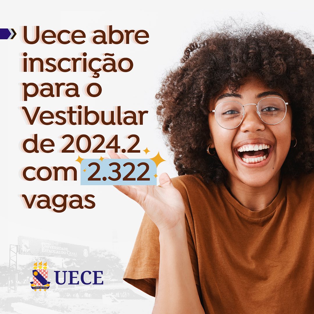 Nesta edição do Vestibular, a UECE está oferecendo 2.322 vagas para ingresso no segundo semestre letivo de 2024. Dentre os cursos com vagas disponíveis, podemos citar Medicina, Letras, Filosofia, Ciência da Computação, Enfermagem e Serviço Social.