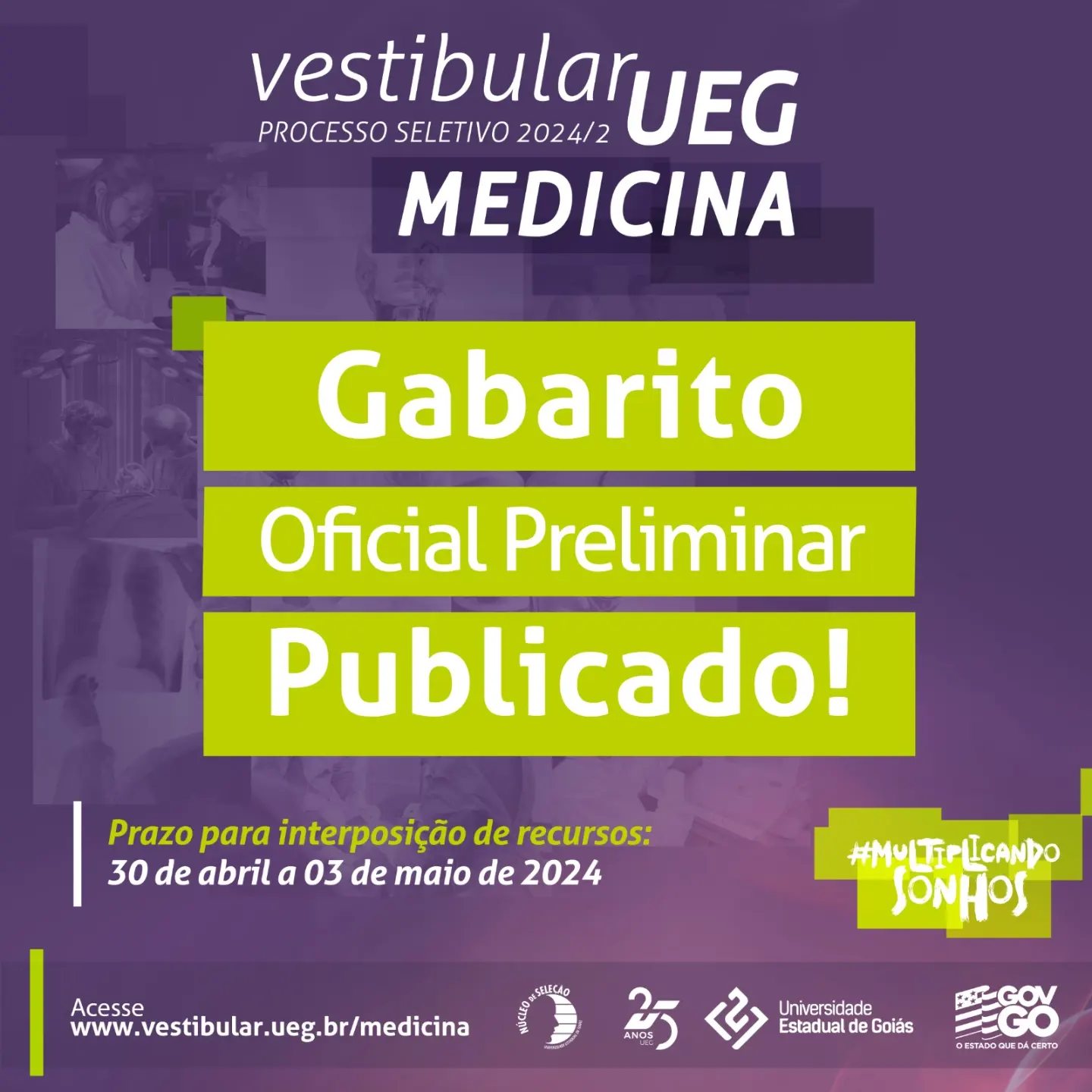 O resultado preliminar do Vestibular de Medicina será publicado no dia 31 de maio e serão aceitos recursos. Por fim, o resultado final do processo seletivo será divulgado pela UEG no dia 21 de junho.