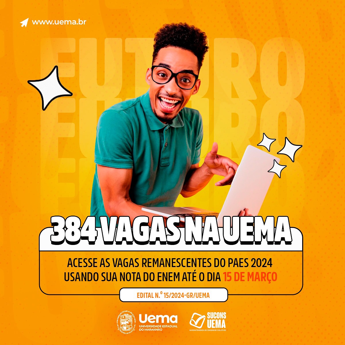 Por meio do Vestibular 2024 via ENEM, a UEMA está oferecendo 384 vagas para diferentes cursos de graduação ministrados pela instituição de forma presencial.