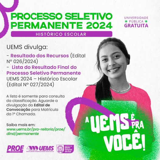 Todos os candidatos aprovados no processo seletivo irão ingressar na UEMS ainda no ano de 2024.