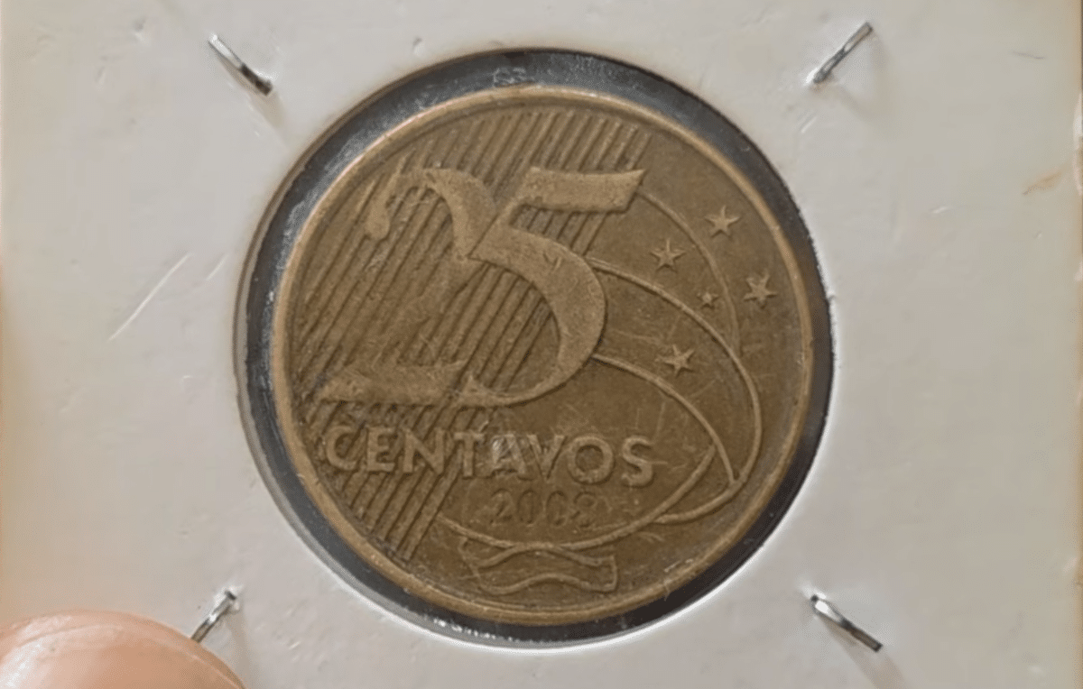 A moeda de 25 centavos de 2008 circulou amplamente. No entanto, algumas dessas moedas apresentam um erro que as transforma em objetos de desejo no universo da numismática: o reverso invertido. Isso acontece quando, ao girar a moeda verticalmente, o verso dela aparece de cabeça para baixo. Esse defeito não é comum e, justamente por isso, agrega valor significativo para quem aprecia moedas raras.
