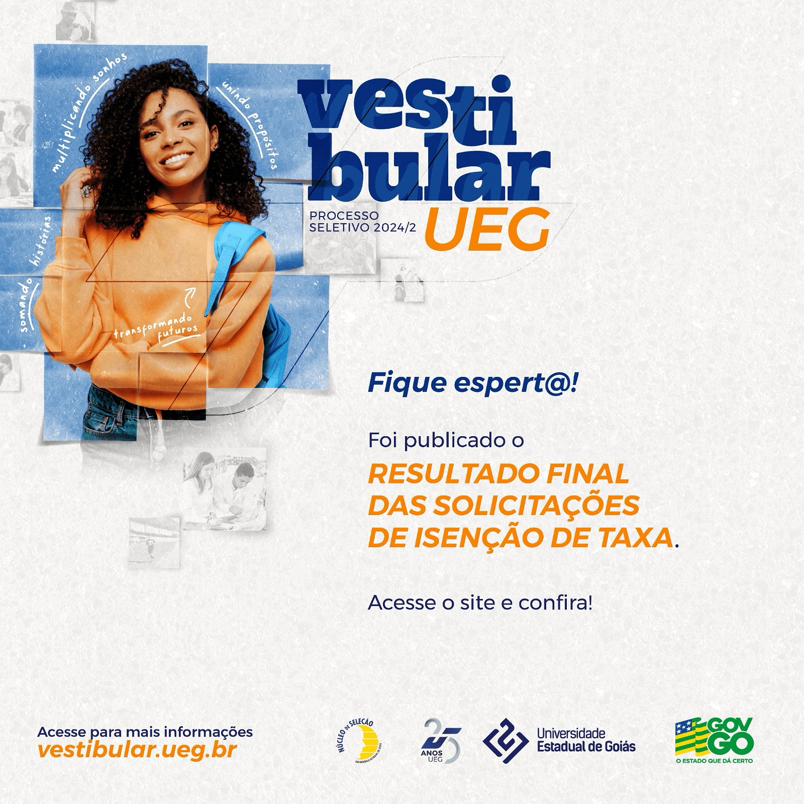 Ainda está com alguma dúvida sobre o resultado dos pedidos de isenção da taxa? Acesse o edital do Vestibular 2024/2 da UEG e confira mais informações sobre o processo seletivo.