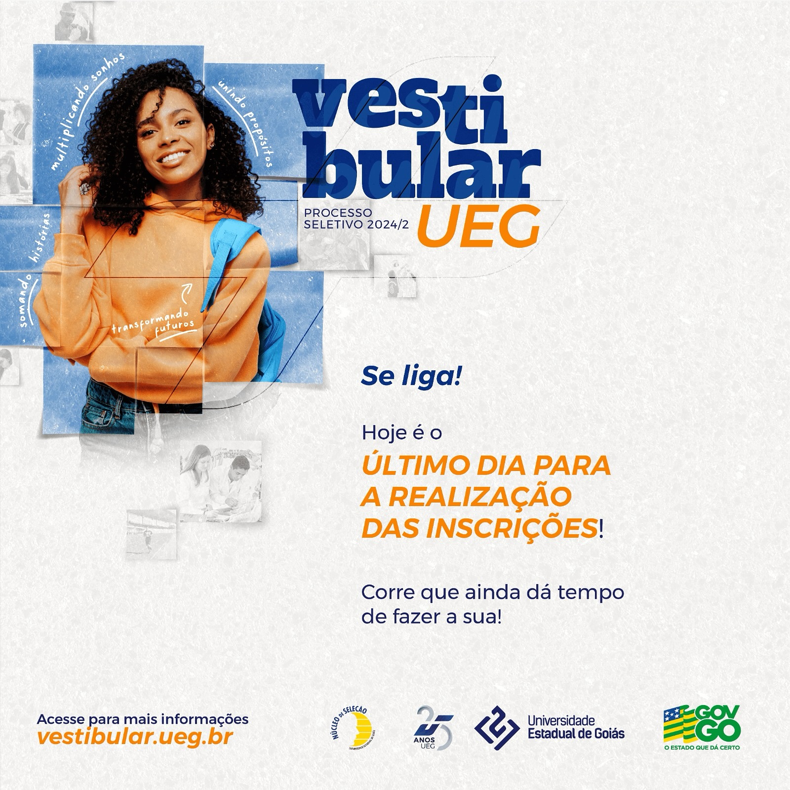 Se você está pensando em estudar na UEG, deve ficar atento: as inscrições para a próxima edição do Vestibular 2024/2 da instituição estão abertas, mas serão encerradas nesta quinta-feira (02).