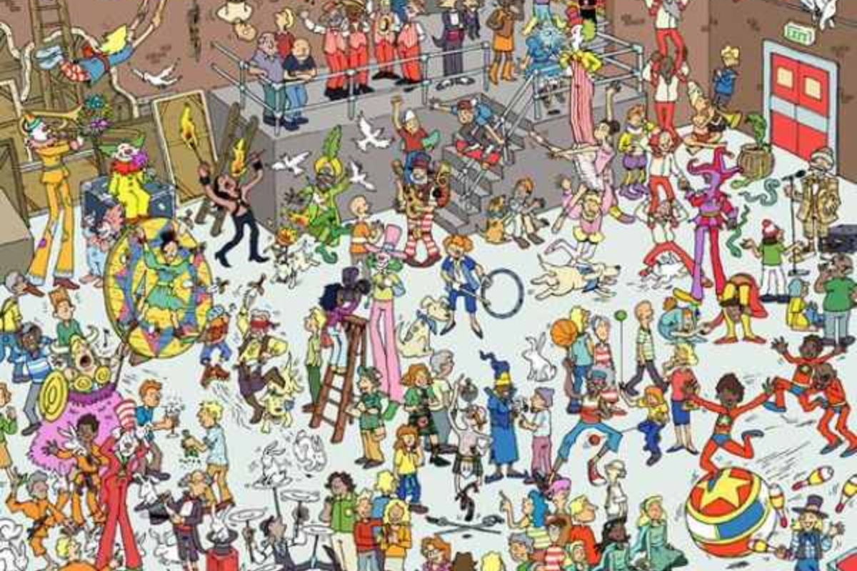 Neste desafio visual, o objetivo é encontrar Wally, o personagem de roupas listradas e chapéu característico, escondido em uma cena repleta de detalhes. A ambientação em um circo caótico dificulta a tarefa, com palhaços, animais e visitantes ocupando cada canto da ilustração. Para deixar o jogo mais emocionante, você tem apenas 11 segundos para localizar Wally.