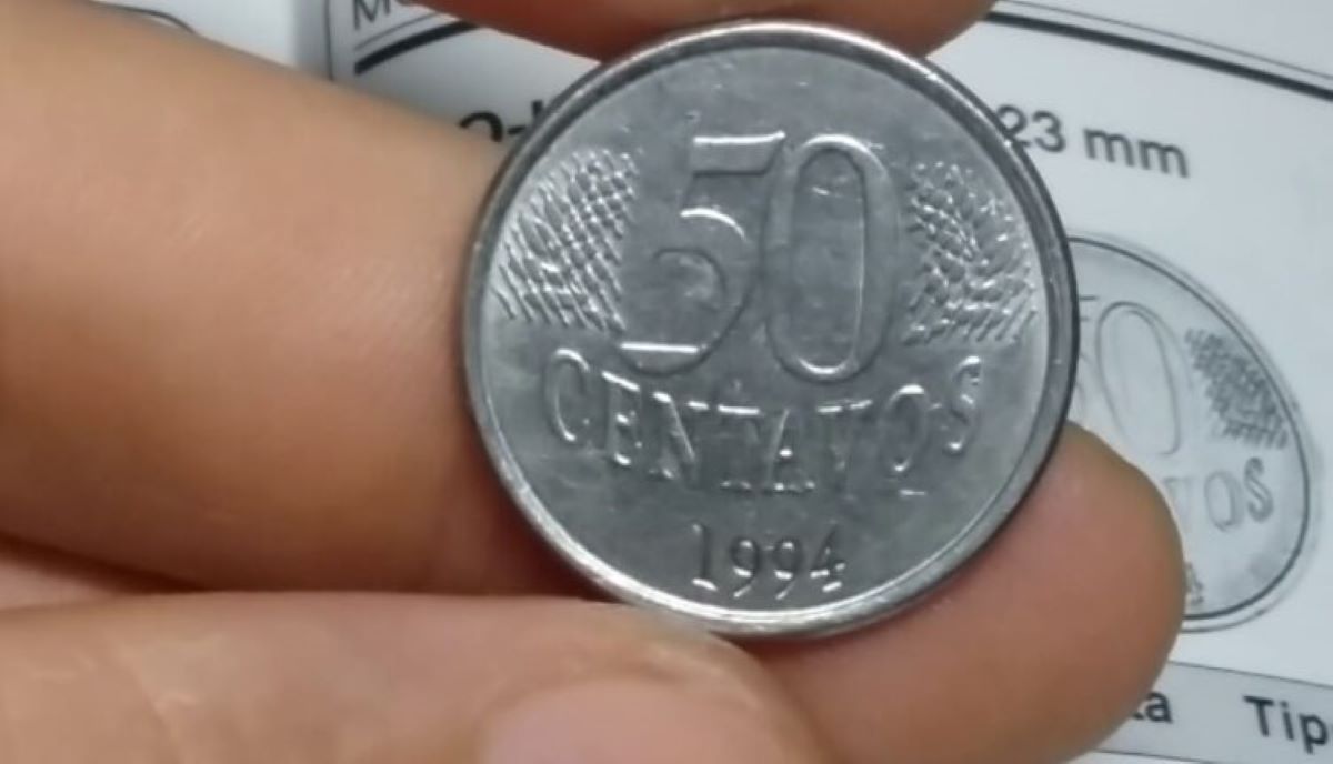 - Moeda de 50 centavos de 1994 com a data marcada – R$10 a R$20
