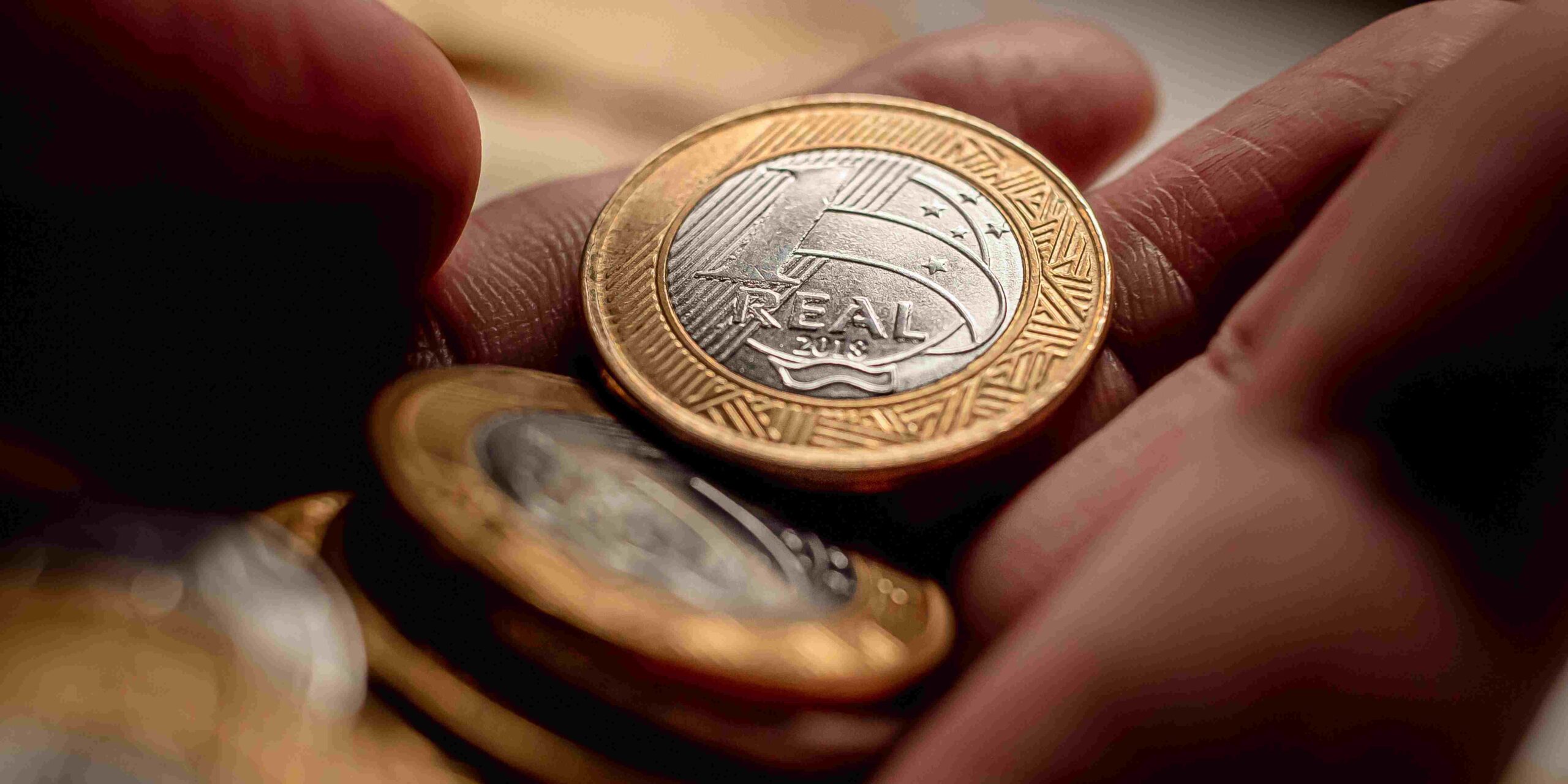 Close-up da moeda de 1 Real com o ano 2013, o exemplar comum que, com um defeito de cunhagem, pode valer uma fortuna entre colecionadores de moedas raras.
